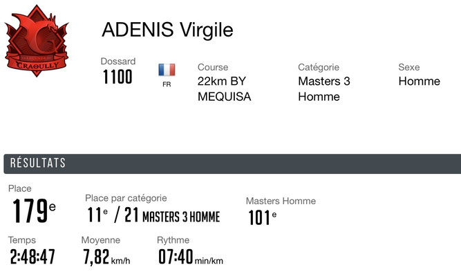 Virgile ADENIS termine 441Úme au général et 39Úme M3M en 4h36'52''