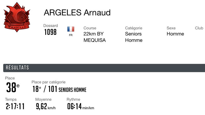 Arnaud ARGELES termine 172Úme au général et 65Úme SEM en 3h41'23''
